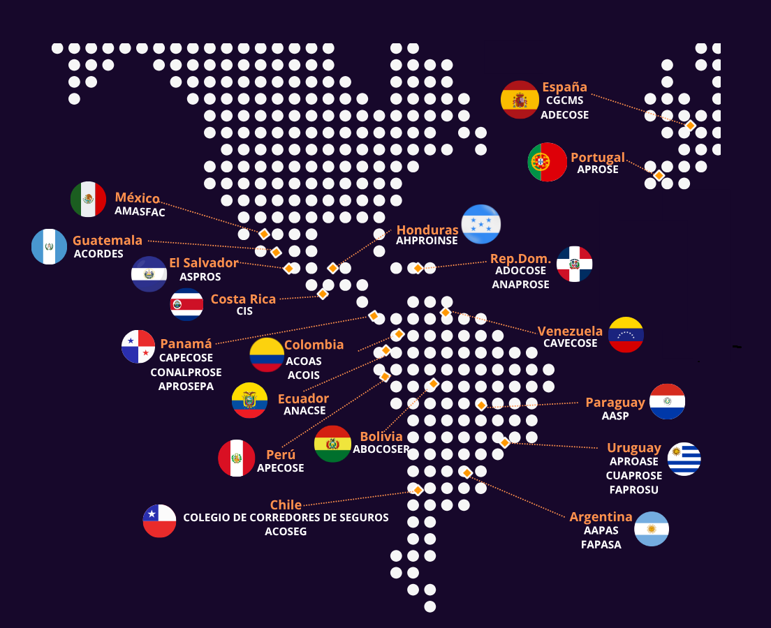 En virtud de ello, a través de su unión en COPAPROSE, más de 65,000 Productores de Seguros, 26 asociaciones de 18 países de Iberoamérica llevan su voz ante diferentes foros de asociaciones y organismos internacionales, participando en numerosos eventos tanto en América como en Europa.